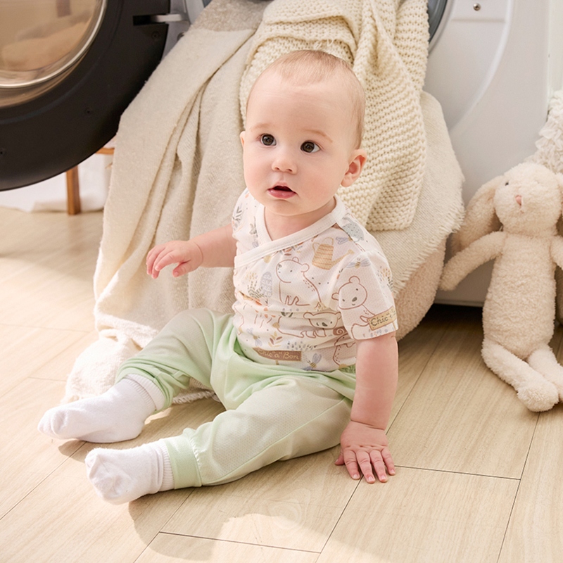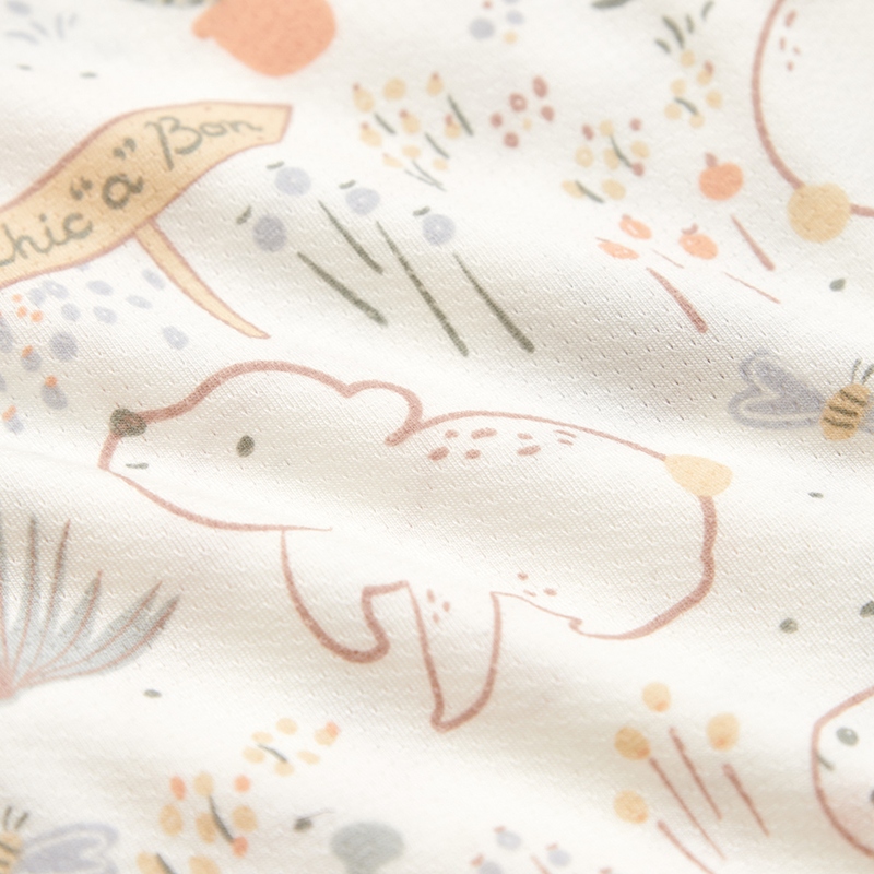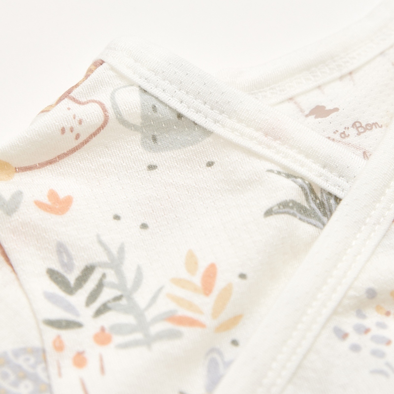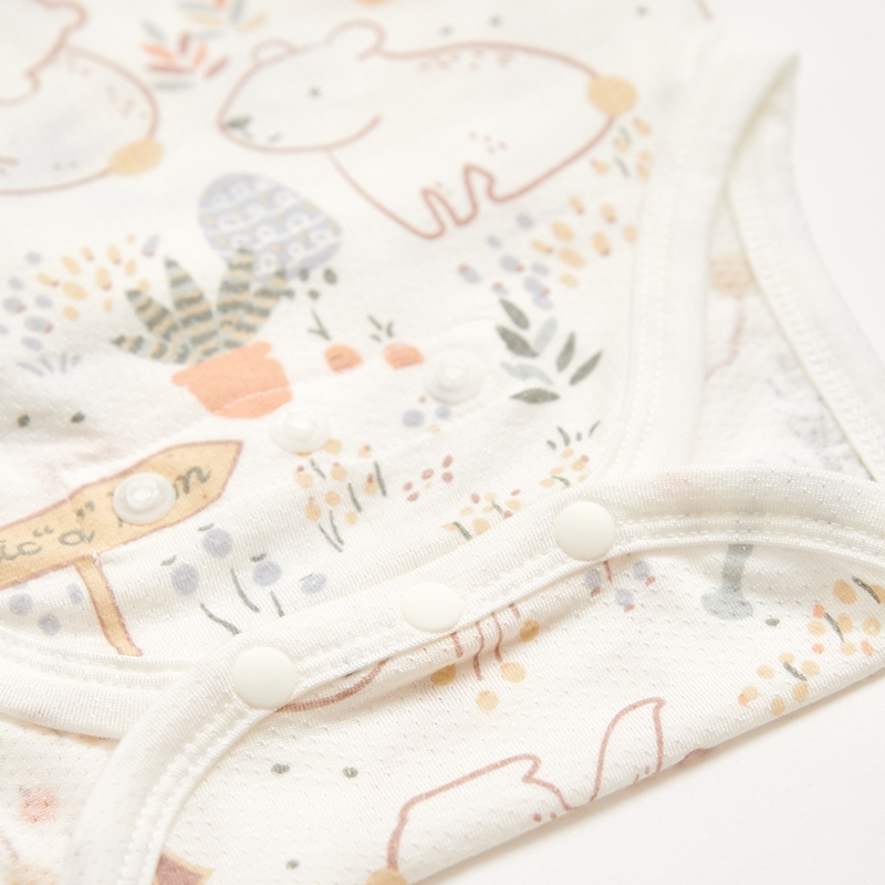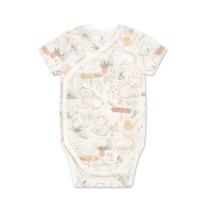 小熊牧場短袖兩段式調節開襟包屁衣 (天絲洞感緹花布)