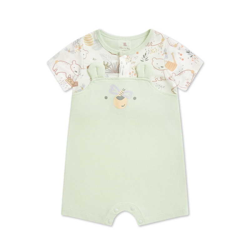 小熊牧場短袖兔裝 (天絲洞感緹花布)