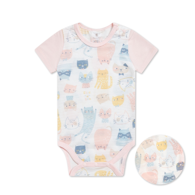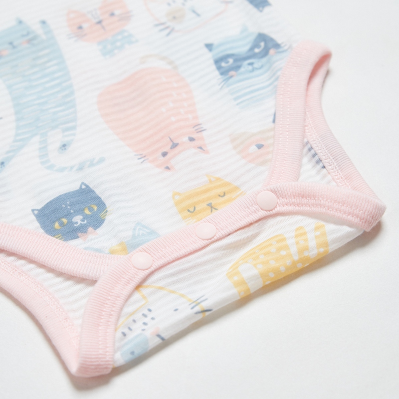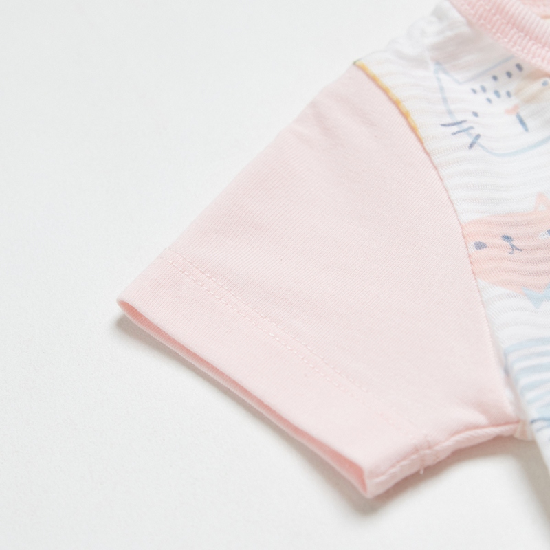 萌貓樂園短袖側開包屁衣 (天絲橫紋單面布)