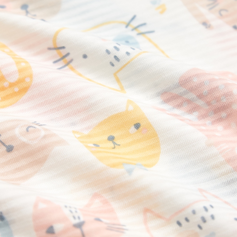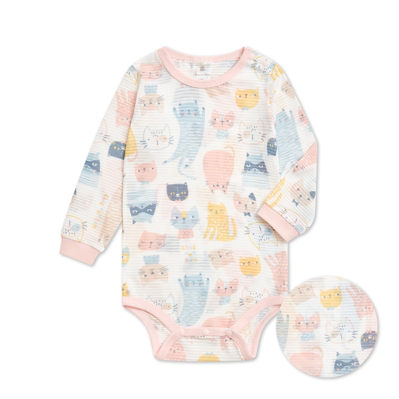 萌貓樂園長袖側開包屁衣 (天絲橫紋單面布)