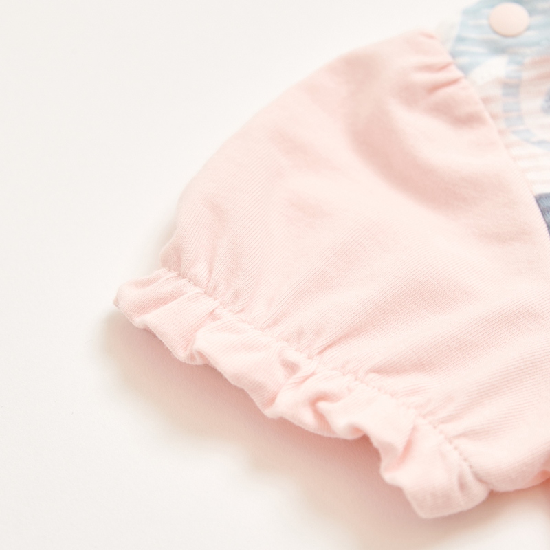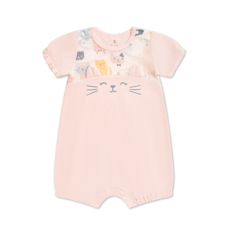 萌貓樂園粉色短袖兔裝 (天絲橫紋單面布)
