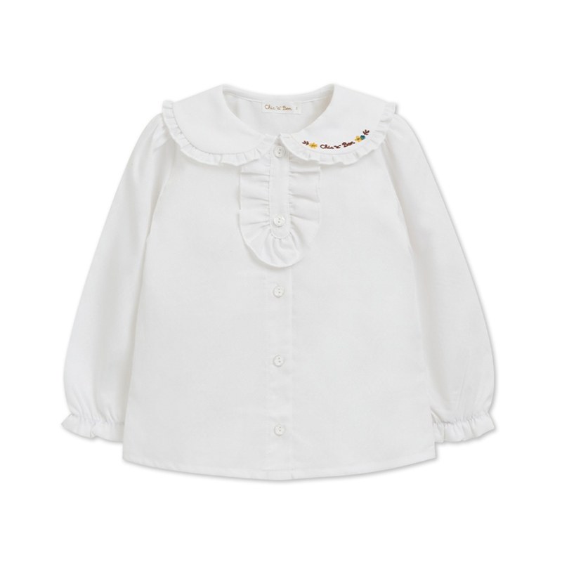 雅緻熊氣質荷葉領純棉長袖襯衫