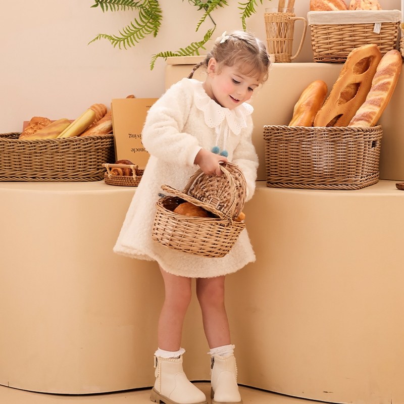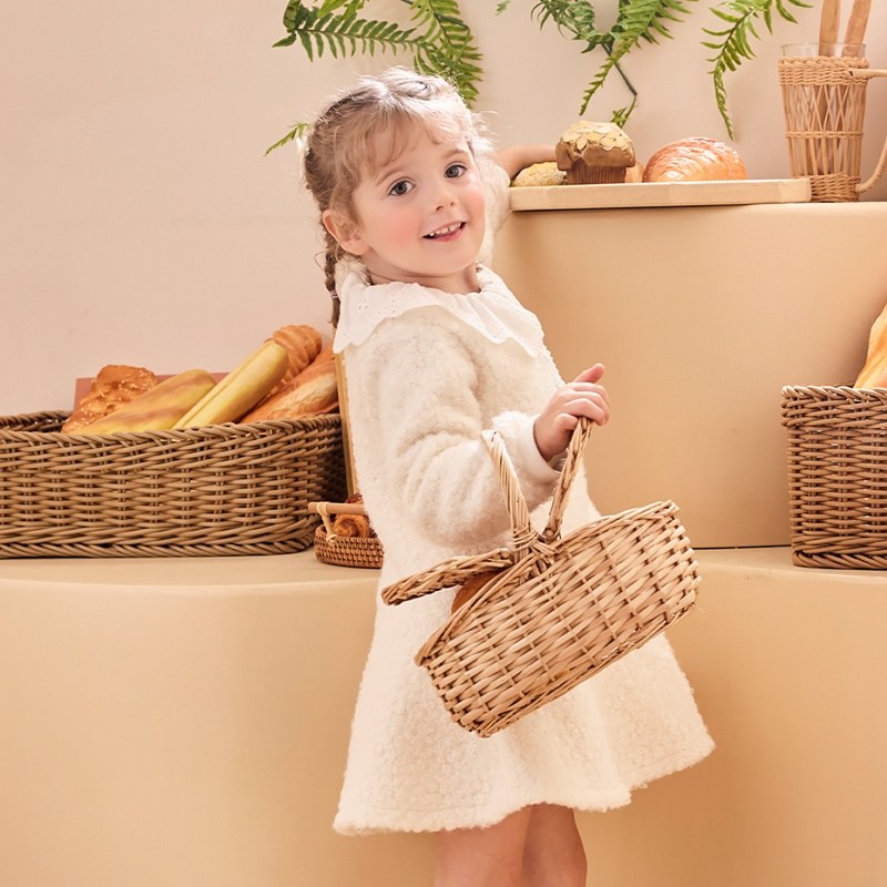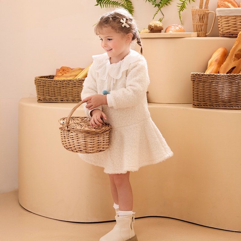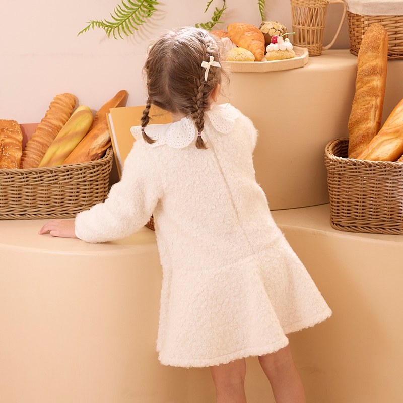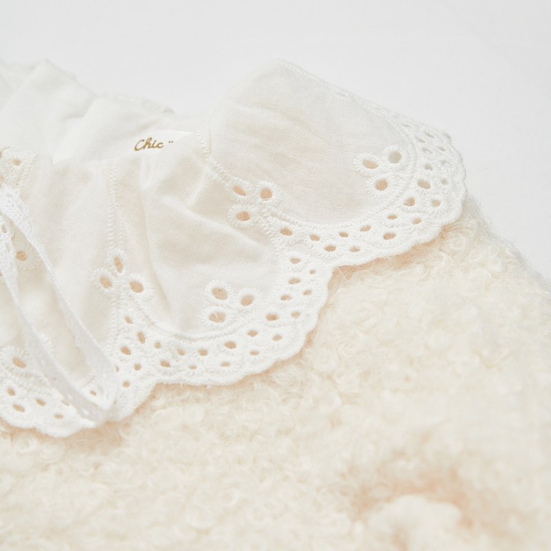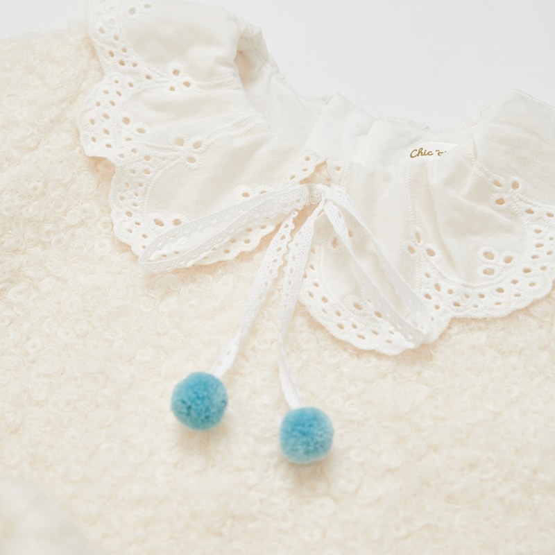 雅緻熊甜美雕花領毛圈針織洋裝