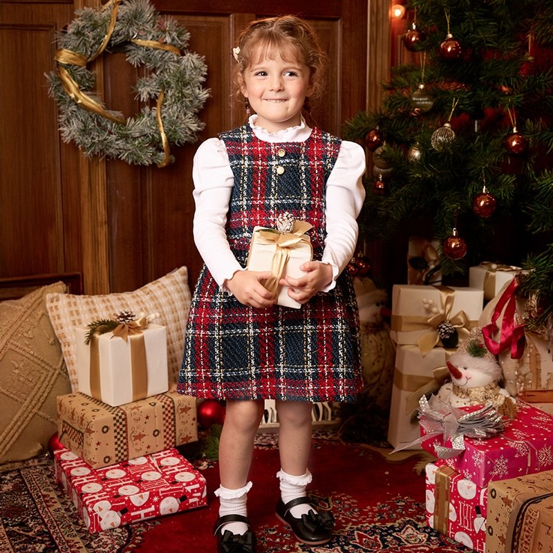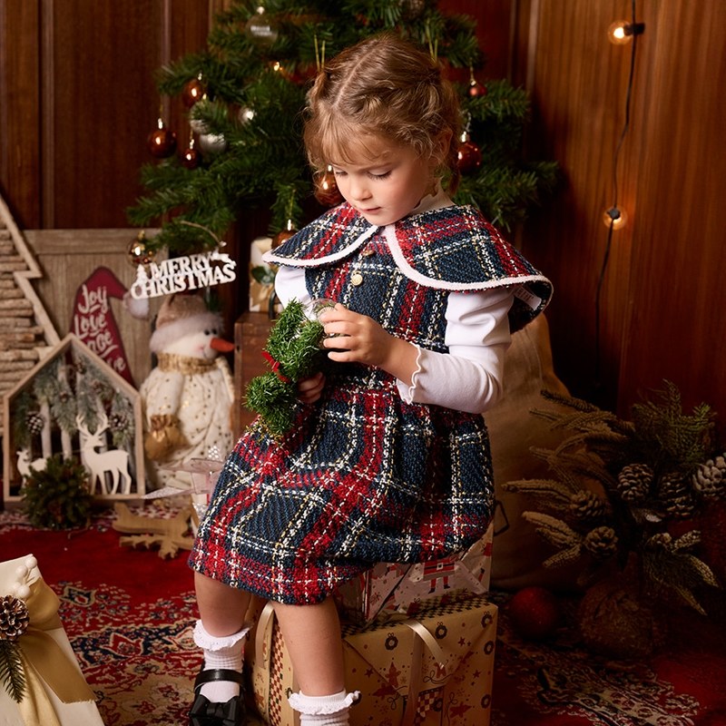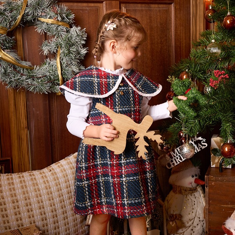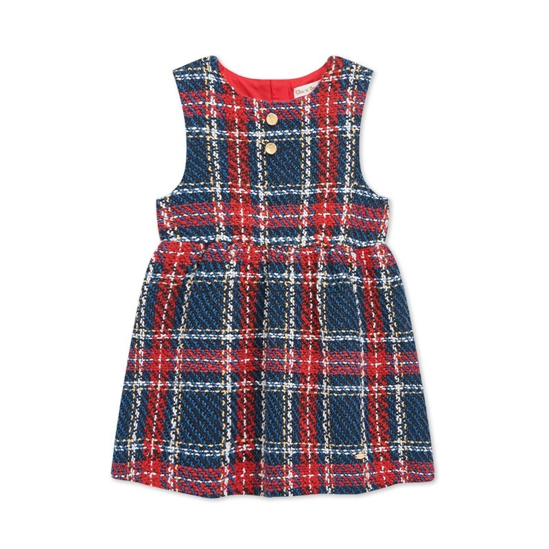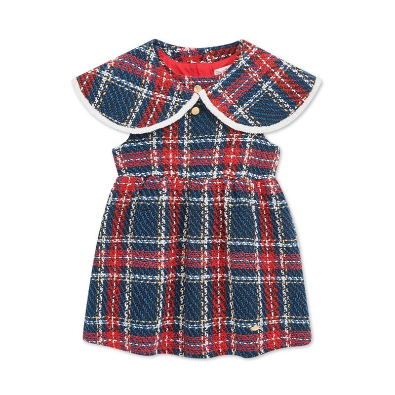 歡樂熊優雅格紋兩件式洋裝-領片可拆
