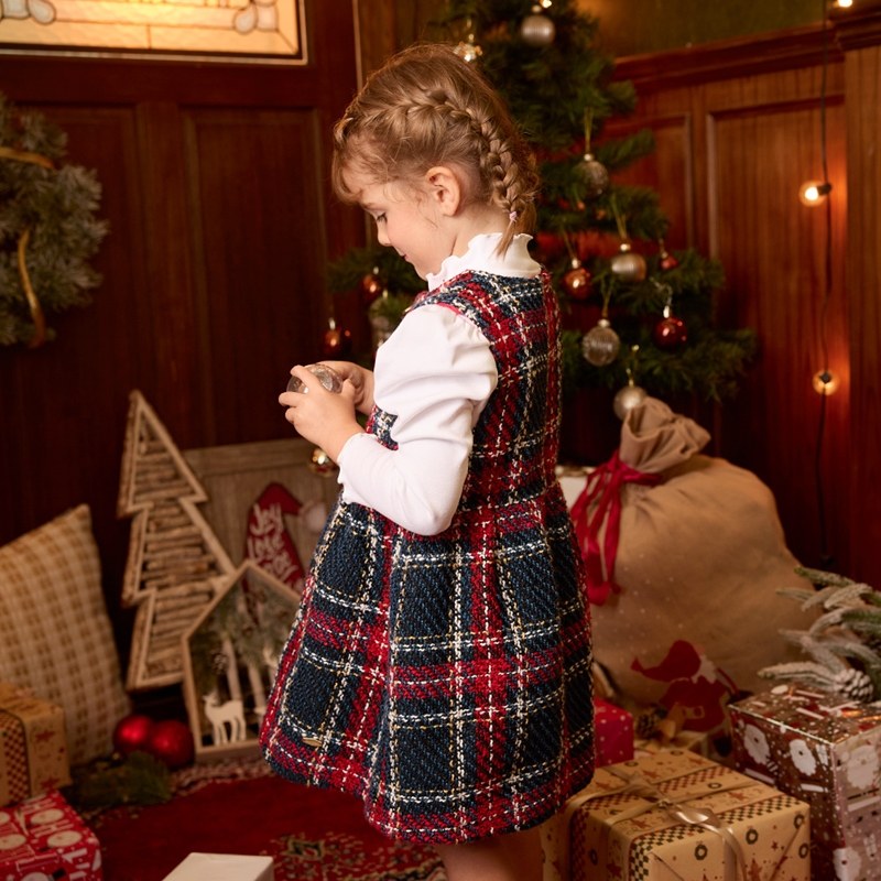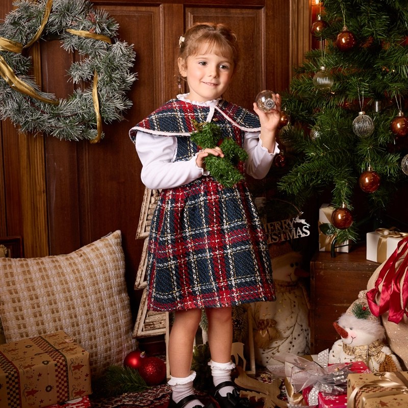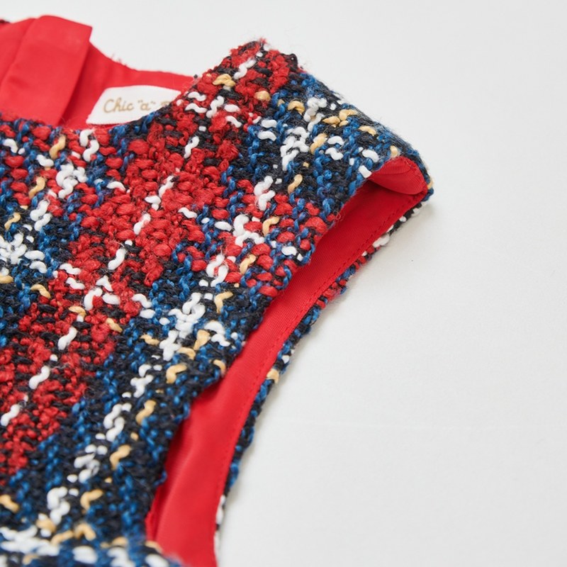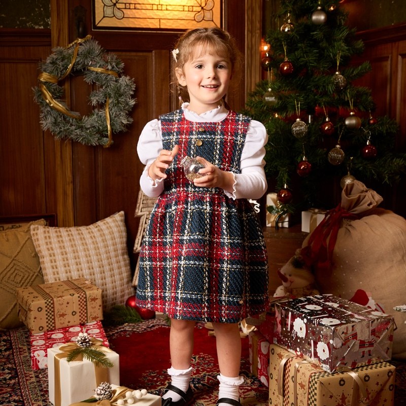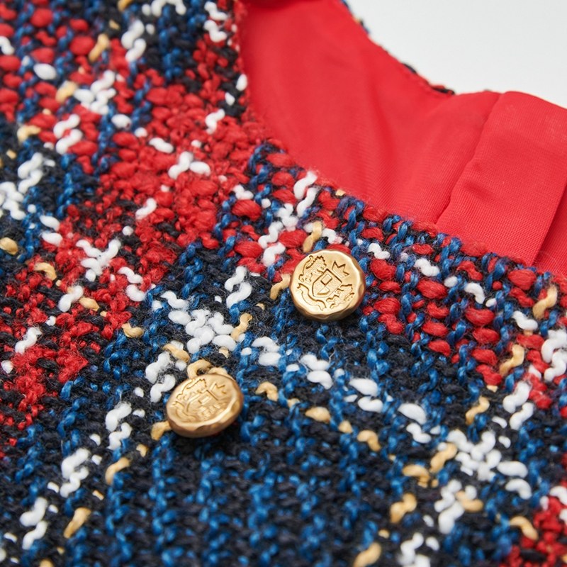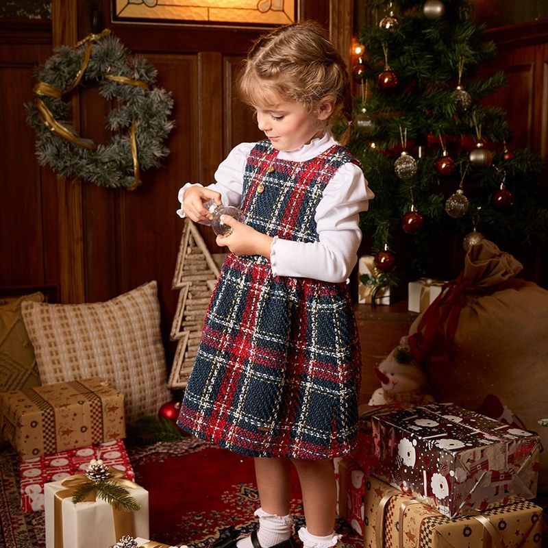 歡樂熊優雅格紋兩件式洋裝-領片可拆