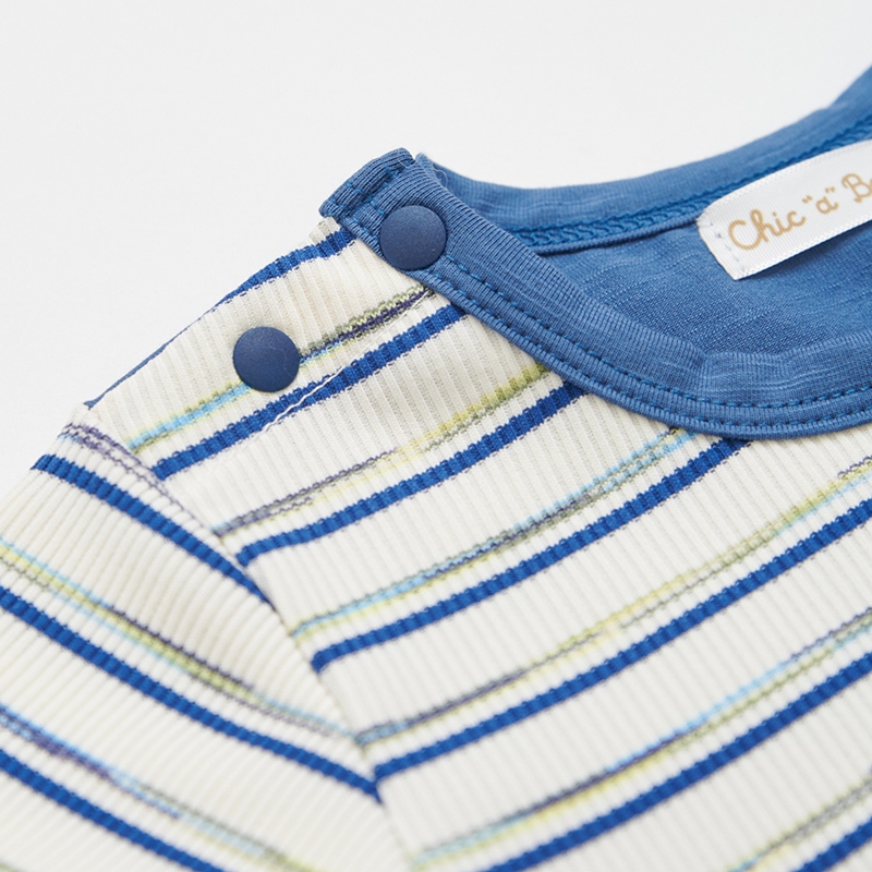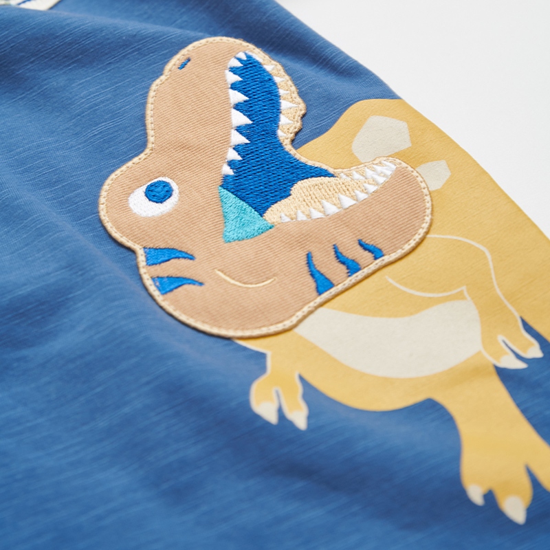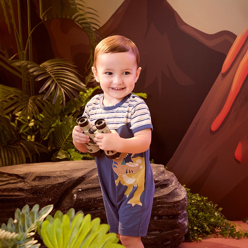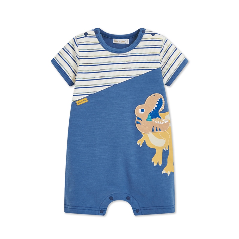 恐龍探險趣條紋拼接短袖兔裝