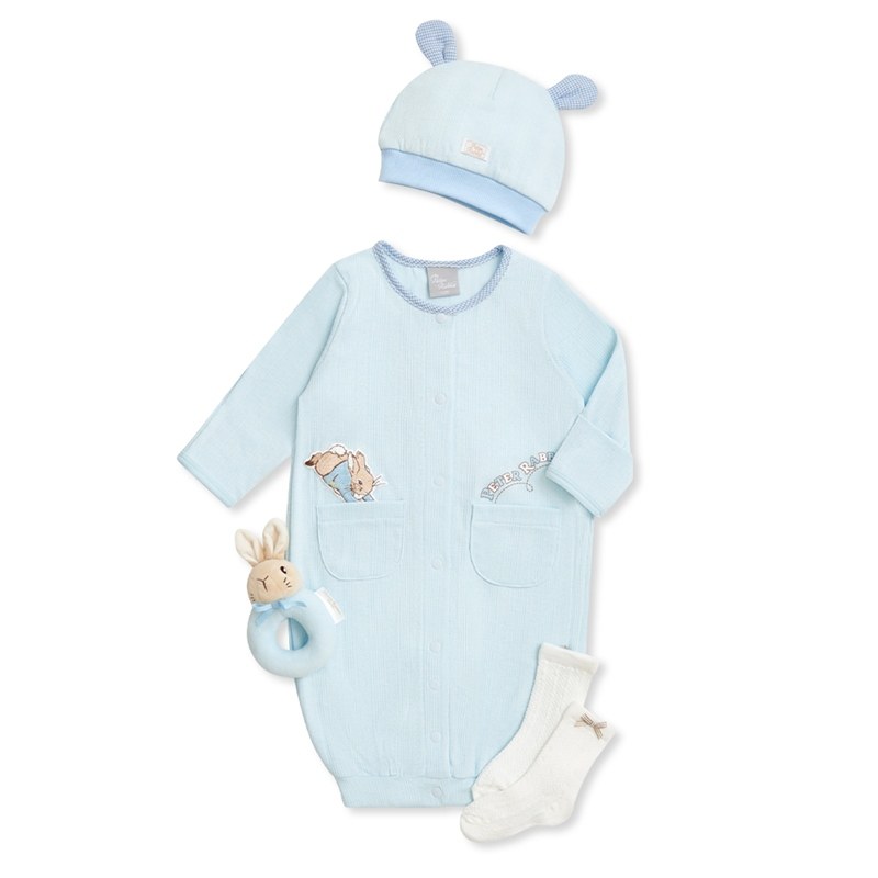比得兔 可愛小兔妙妙裝禮盒/連身衣4件組禮盒 (妙妙裝+手搖鈴+帽子+襪子)