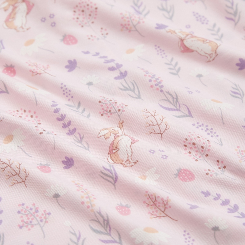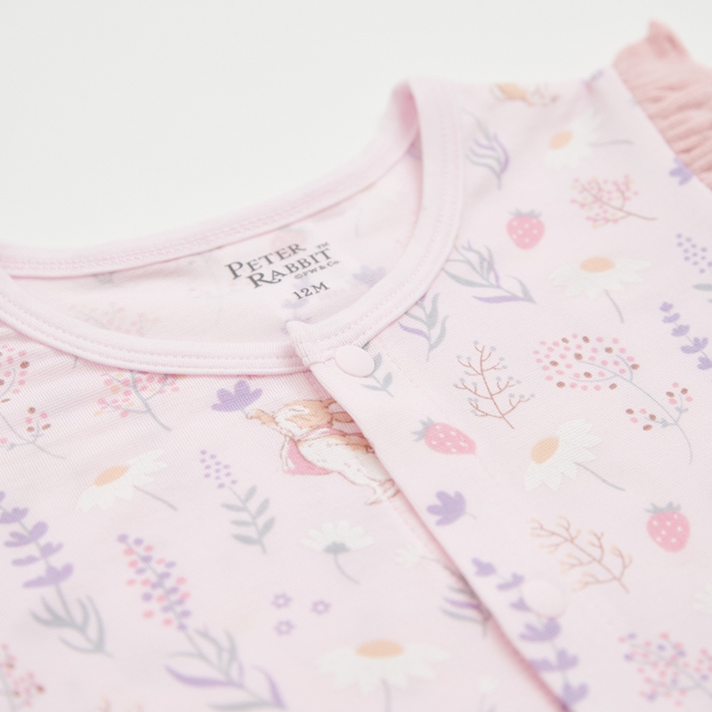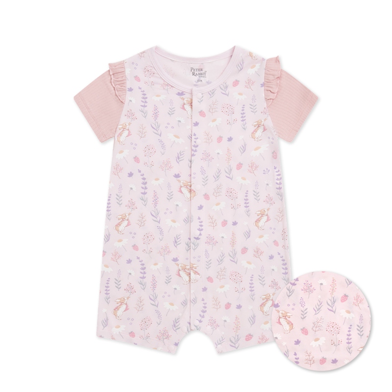 採花趣粉紫色短袖兔裝 (水晶紗)