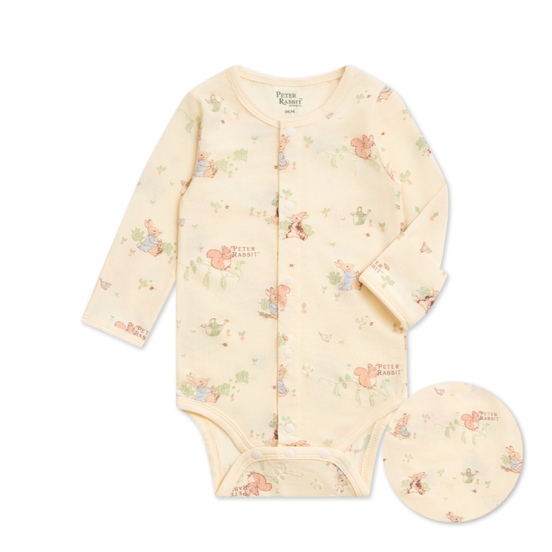 野餐比得長袖前開包屁衣 (天絲洞感緹花布)