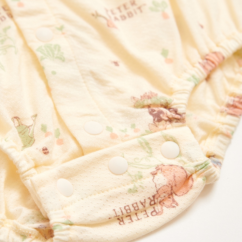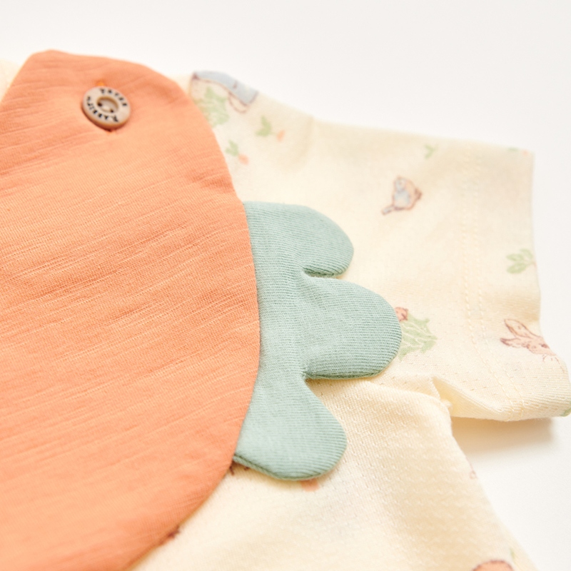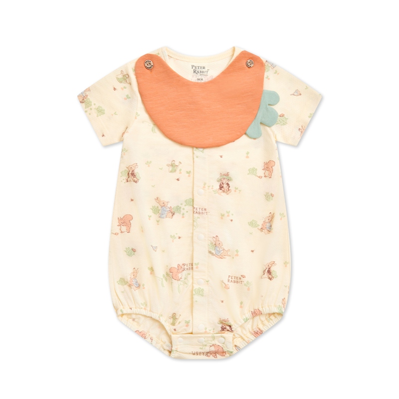 野餐比得短袖前開包屁衣 (天絲洞感緹花布+精品竹節棉布)