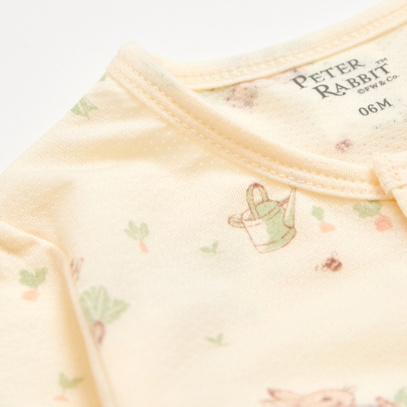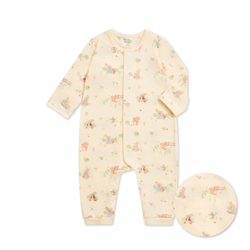 野餐比得米色長袖兔裝 (天絲洞感緹花布)