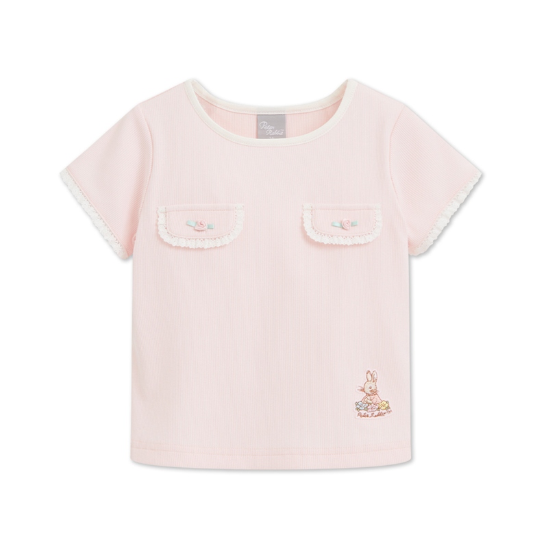 小香兔蕾絲滾邊立體花上衣
