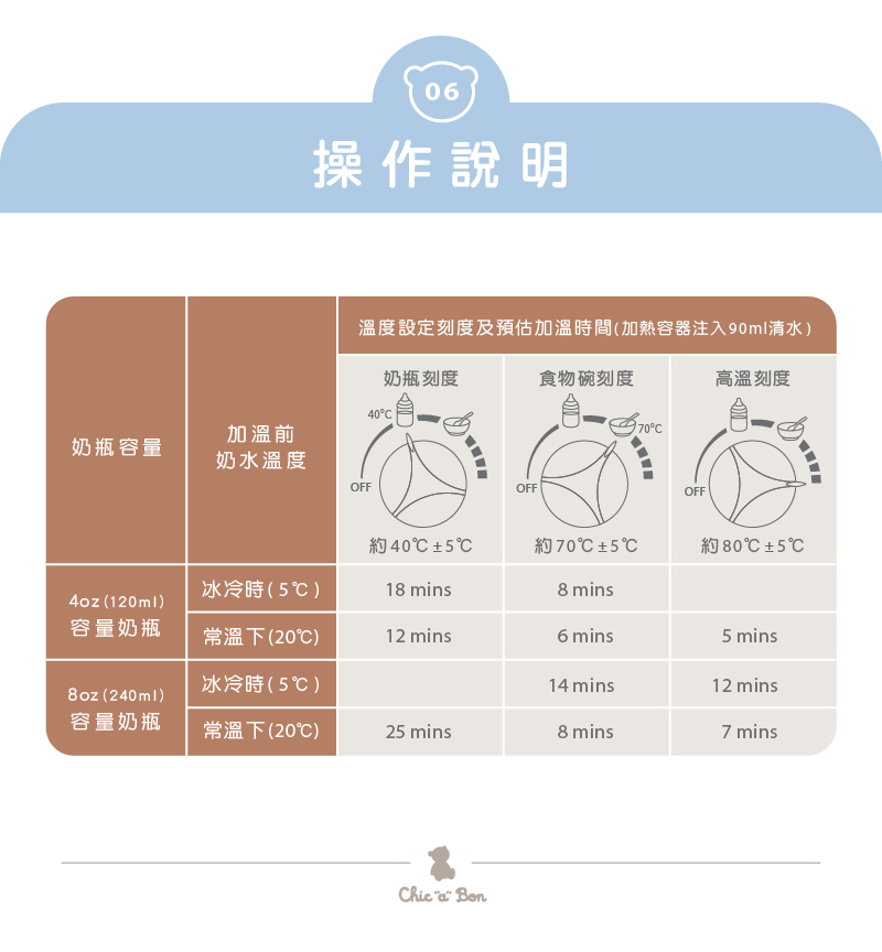 5. 食物加溫後,請確認溫度是否適當,以免燙傷寶寶。