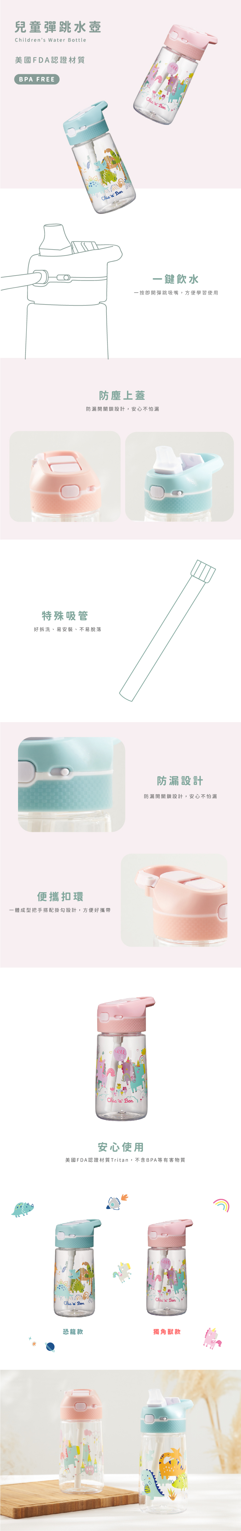 ● 單手操作,彈跳吸嘴一按即開,方便寶寶學習使用